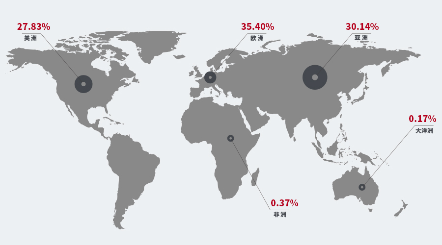 (必一科技2024年上半年全球市场营收占比图)