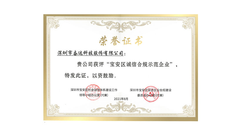 9月9日,宝安区发布首批“3A”信用企业名单及联合激励实施细则,并为宝安区诚信合规示范园区和企业进行授牌。经过自主申报、材料初审、实地考察、专家评审、社会公示等环节综合评定,必一科技获批“宝安区诚信合规示范企业”及宝安区“3A”信用企业荣誉称号。